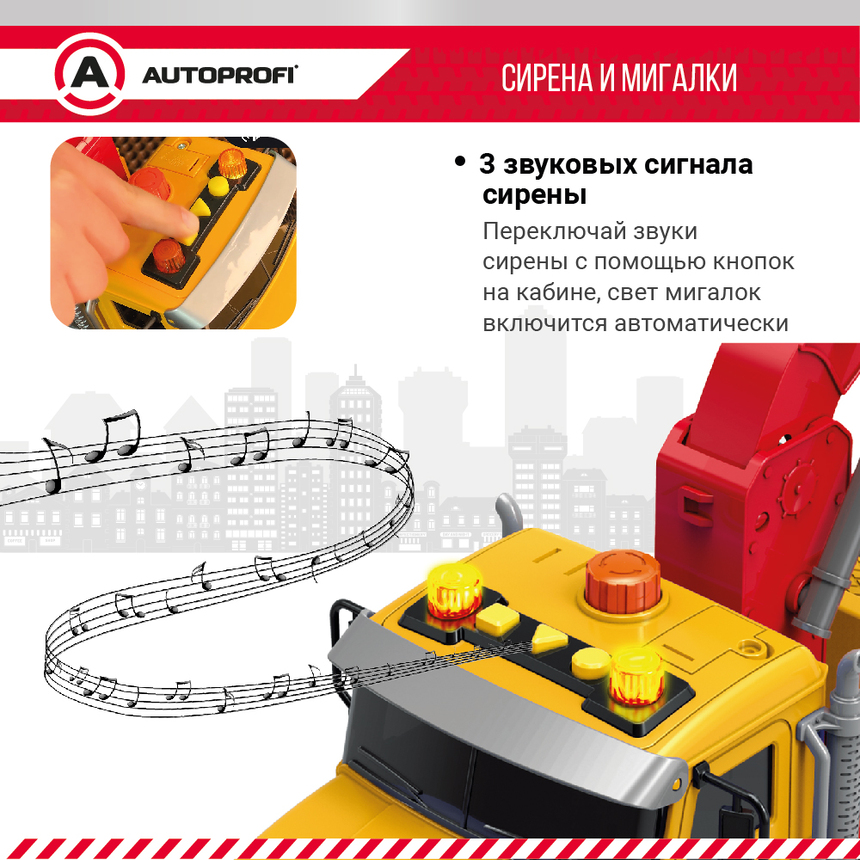 Инерционный городской транспорт с подвижными деталями "Эвакуатор", свет, звук, 35 см