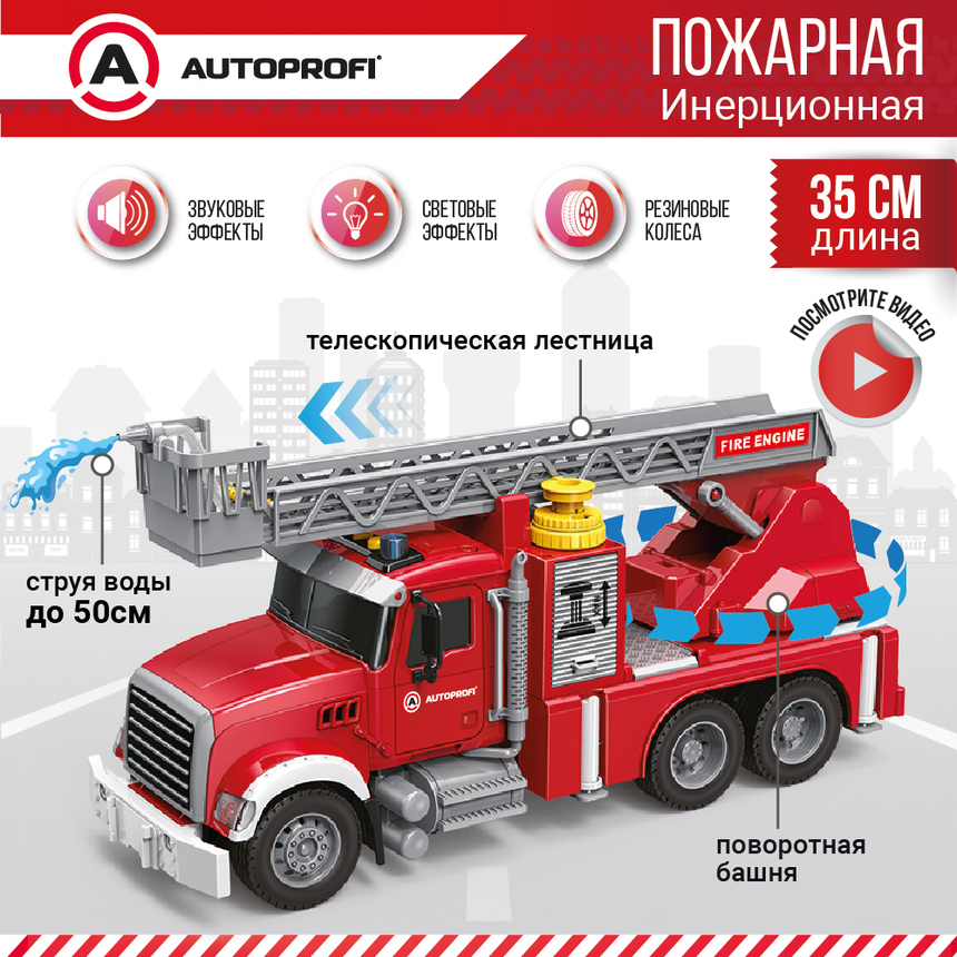 Инерционный городской транспорт с подвижными деталями "Пожарная машина", вода, свет, звук, 35 см