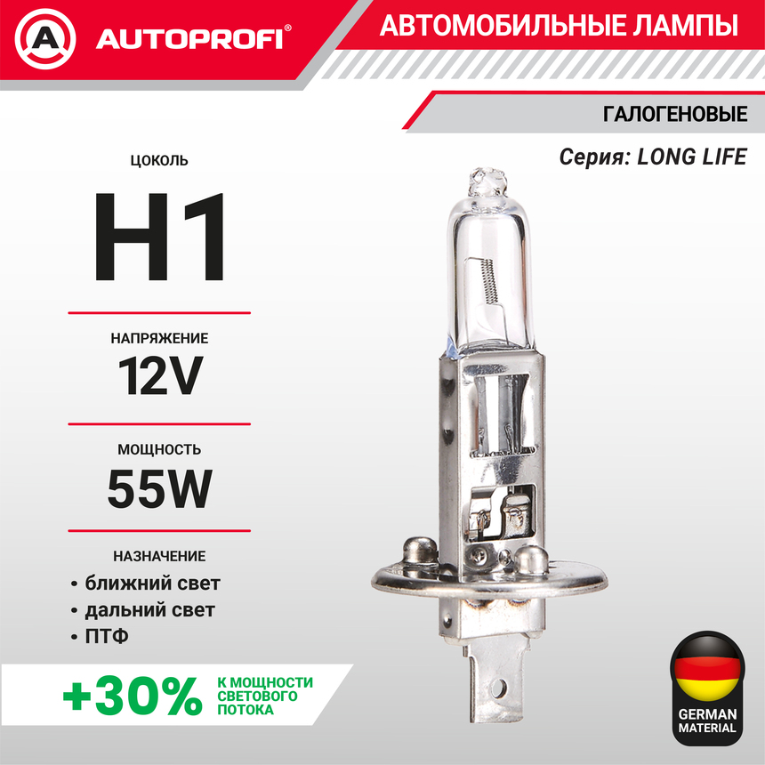 Линейка галогеновых ламп AUTOPROFI LONG LIFE - Галогеновые лампы со световым потоком на 30% мощнее чем у стандартных ламп. Имеют увеличенный более чем в 2 раза рабочий ресурс..