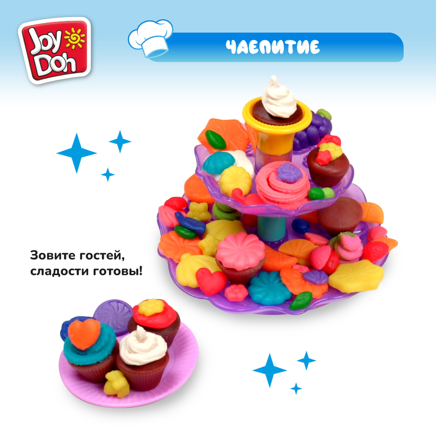Масса для лепки Joy Doh, набор DESSERT FUN - СЛАДКОЕЖКА, поднос с пресс-формами, 15 аксессуаров, 3 баночки с тестом, (3 х 50 г.)
