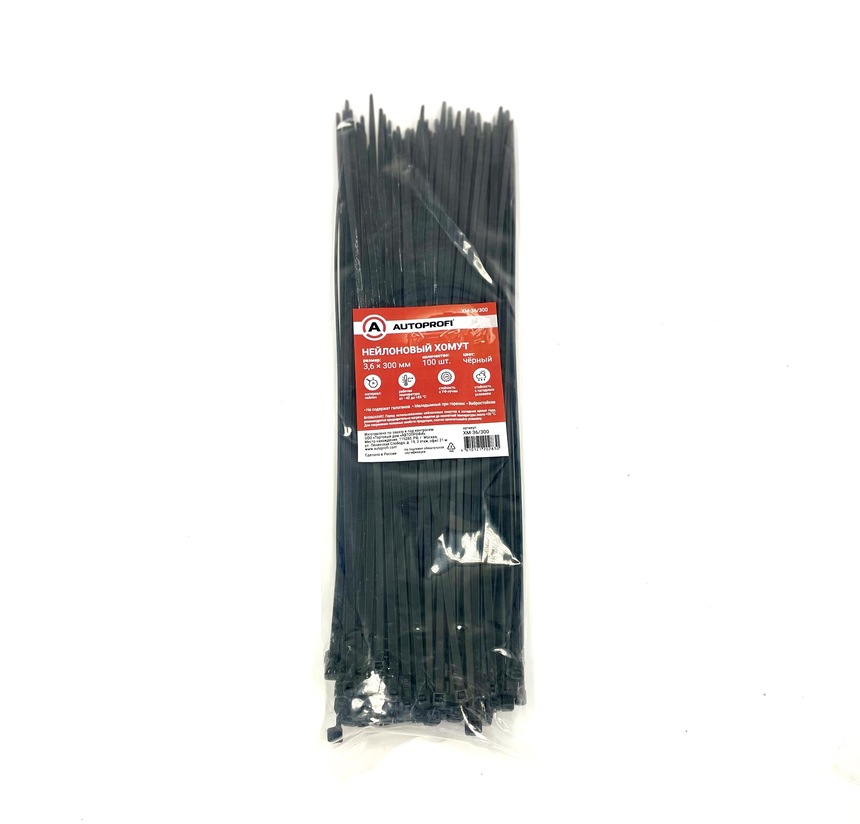Нейлоновый хомут 3.6*300 мм, 100 шт, рабочая температура от -40 °С до +85 °С, черный