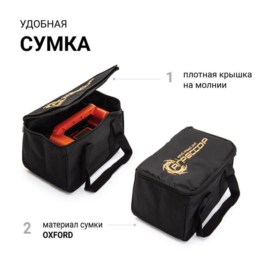 Цифровой компрессор AGR-40 Digital рассчитан на работу при температуре от -30 °С до +40 °С. В комплекте идет удобная сумка для хранения и переноски, а также запасной предохранитель.